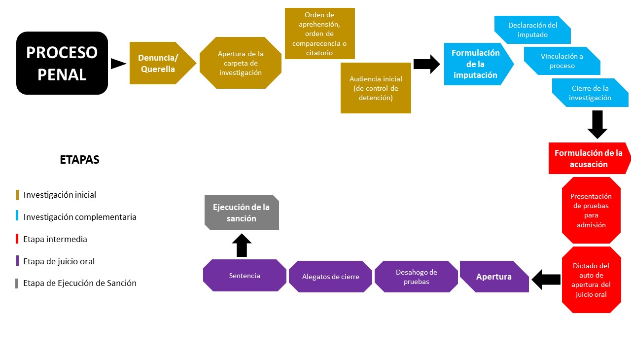 Atención a todo tipo penal en fuero federal y local, en cualquier etapa, desde la presentación de denuncia, integración de la investigación y proceso judicial. Revisa la siguiente información para que conozcas las etapas del proceso penal.